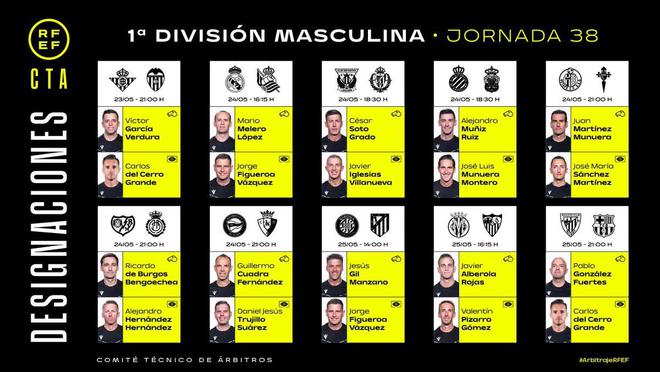 西甲收官战裁判:冈萨雷斯执法巴萨,梅莱罗执法皇马